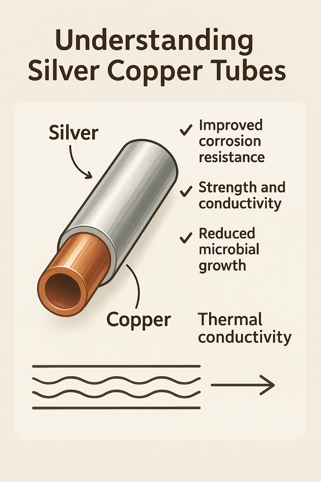 أنابيب النحاس الفضية عادة ما تكون عبارة عن أنابيب نحاسية معززة بنسبة صغيرة من الفضة سواء من خلال صناعة السبائك أو المعالجة السطحية. تعمل هذه الإضافة على تحسين العديد من الخصائص المتأصلة للنحاس دون المساس بمزاياه المعروفة. النحاس منذ فترة طويلة تم تقديرها في البناء لممتازتها الموصلية الحرارية , القابلية للتشكيل ، و resistance to many forms of corrosion. The inclusion of silver further enhances these characteristics, particularly in environments where الرطوبة , المواد الكيميائية أو تقلبات درجات الحرارة يمكن تسريع تدهور المواد.