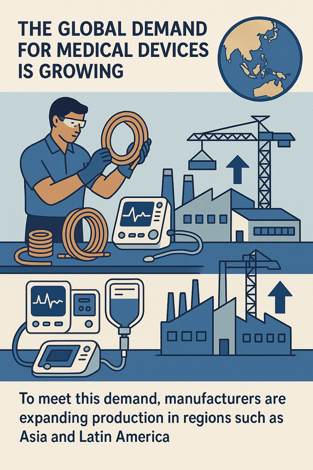 تقوم بعض الشركات المصنعة بإنشاء مرافق إنتاج جديدة في المناطق التي تشهد أسواق رعاية صحية متنامية، مثل آسيا وأمريكا اللاتينية، حيث يمكنهم إمداد الأسواق المحلية بشكل أكثر كفاءة وفعالية من حيث التكلفة. تتيح هذه التوسعات الإقليمية أيضًا للمصنعين خدمة احتياجات الأسواق الطبية المتنوعة بشكل أفضل والتنقل في المشهد التنظيمي في مختلف البلدان.