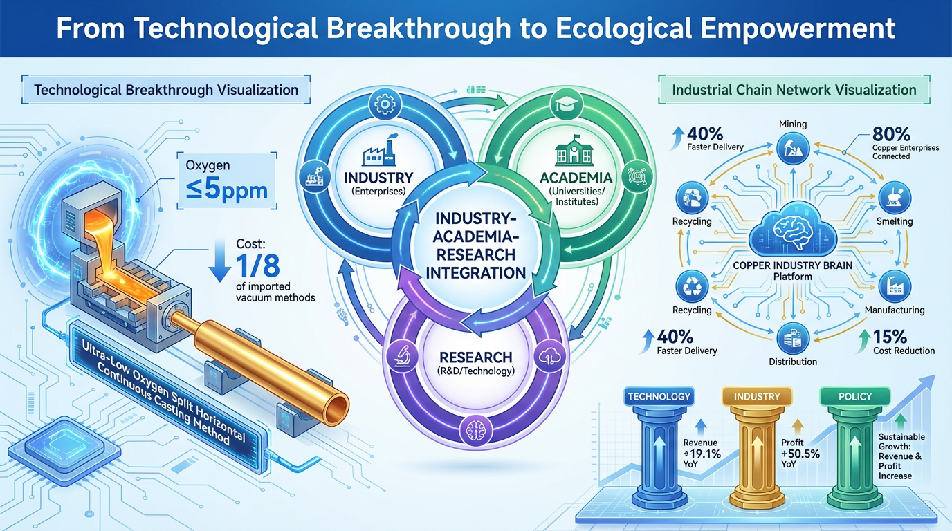 نطاق التعاون يتوسع ليشمل السلسلة بأكملها. قامت شركات النحاس في جيانغشي ببناء "عقل صناعة النحاس" الذي يربط 80% من شركات النحاس في المدينة، مما يتيح مشاركة القدرات وتنسيق الطلبات من خلال تحليل البيانات الضخمة. يسمح نهج المنصة هذا للشركات الصغيرة والمتوسطة بالمشاركة في المنافسة الراقية: عندما تتلقى إحدى الشركات طلبًا كبيرًا جدًا، يقوم النظام تلقائيًا بتقسيمه بين مصانع متعددة للإنتاج الموازي، مما يقلل وقت التسليم بنسبة 40٪ والتكاليف بنسبة 15٪. وعلى جبهة السياسات، تدعم "خطة تنفيذ التنمية العالية الجودة لصناعة النحاس (2025-2027)" بشكل واضح بناء اتحادات الإبداع، التي تهدف إلى التغلب على 10 إلى 12 تقنية من "عنق الزجاجة" في غضون ثلاث سنوات. وساهم هذا التآزر ثلاثي الأبعاد بين "سياسة الصناعة والتكنولوجيا" في تحقيق صناعة النحاس في جيانغشي نموًا في الإيرادات بنسبة 19.1٪ على أساس سنوي وزيادة في الأرباح بنسبة 50.5٪ في الأرباع الثلاثة الأولى من عام 2025.