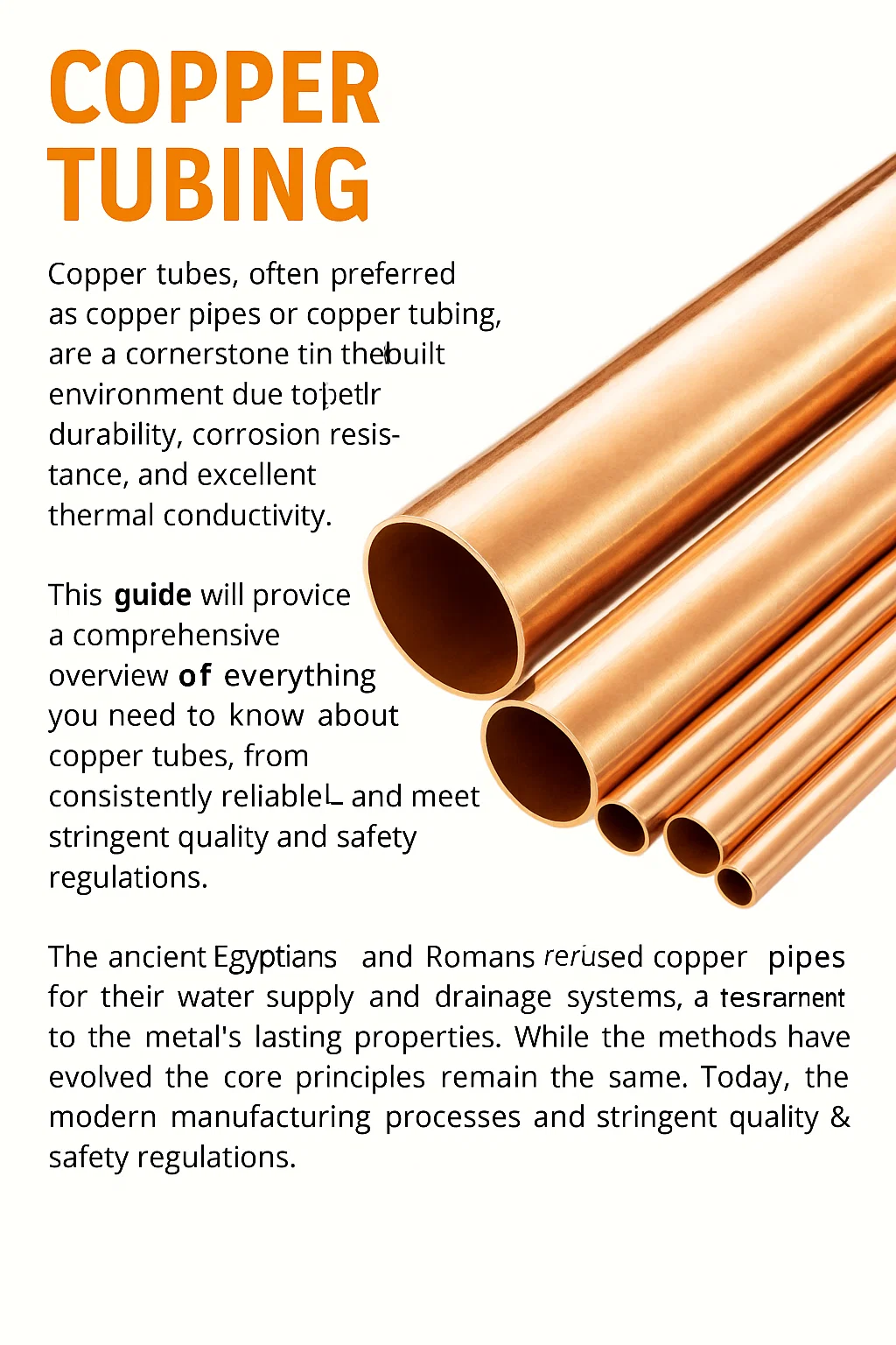 أنابيب النحاس ، التي يشار إليها غالبًا باسم الأنابيب النحاسية أو الأنابيب النحاسية ، هي حجر الزاوية في السباكة الحديثة ، والتدفئة ، والتهوية ، وتكييف الهواء (HVAC) ، ونظام التبريد. من حمل مياه الشرب إلى المبردات المتداولة ، لا مثيل لها. سيقدم هذا الدليل نظرة عامة شاملة على كل ما تحتاج إلى معرفته حول أنابيب النحاس ، من أنواعها وأحجامها المختلفة إلى تطبيقاتها وفوائدها العديدة.