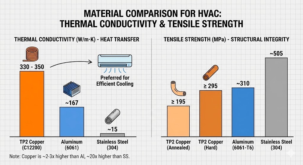 سواء كان ذلك في وحدات تكييف الهواء التي تحافظ على راحة منازلنا، أو السباكة التي توفر المياه الصالحة للشرب، أو أنظمة التبريد في الجيل القادم من السيارات الكهربائية، تظل TP2 المادة الأساسية لإدارة الحرارة والسوائل الحديثة. عند اختيار مادة لتطبيقات الضغط العالي أو درجة الحرارة العالية أو عالية الكفاءة، فإن TP2 (C12200) يقف كمعيار صناعي مثبت.