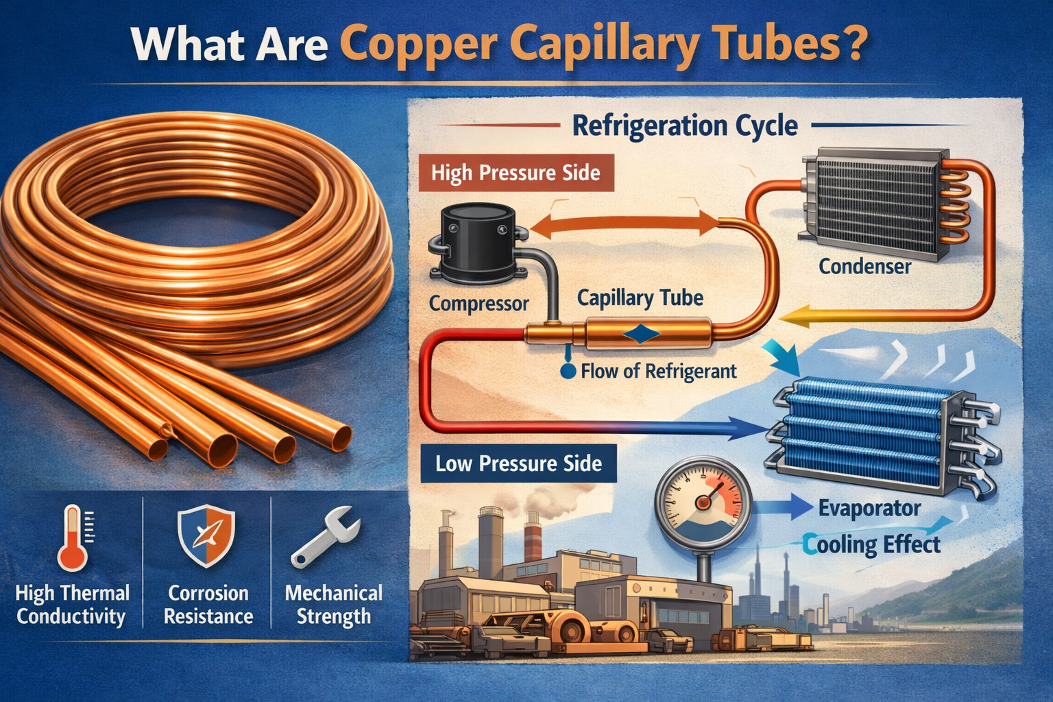 النحاس هي واحدة من المواد الأكثر استخدامًا للأنابيب الشعرية نظرًا لجودتها الممتازة الموصلية الحرارية ، مقاومة التآكل ، و القوة الميكانيكية . هذه الصفات تجعل النحاس مادة مثالية لإنشاء أنابيب شعرية موثوقة وطويلة الأمد يمكنها تحمل متطلبات أنظمة التبريد. ونتيجة لذلك، يعتمد العديد من الشركات المصنعة على النحاس tube factory لإنتاج ذات جودة عالية النحاس capillary tubes لتلبية معايير الصناعة.